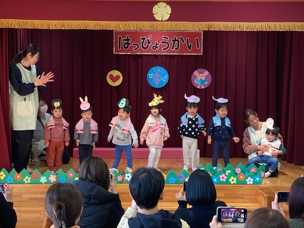 寒さが増して感染症が流行しやすい時期となりました。今月は子どもたちが楽しみにしている、生活発表会〜みてみて!大きくなったよ〜があります。手洗いや消毒などを丁寧に行ったり、衣服の調節をこまめにして、風邪に負けないように元気に過ごしていきたいと思います。