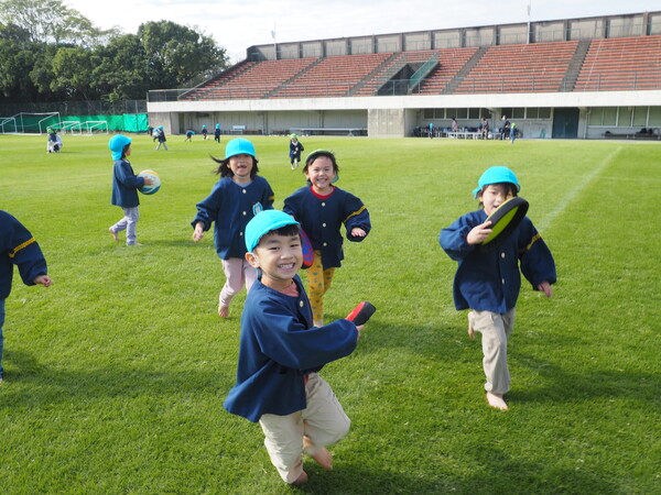 裸足で遊んだので芝生の感触を足で感じられ、子どもたちは大喜びでしたよ😊