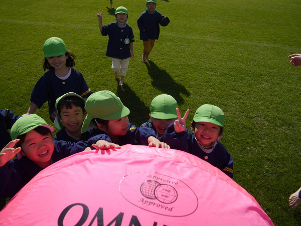 芝生の広場でサッカーやキンボールを転がしながらたくさん走った子どもたち!
