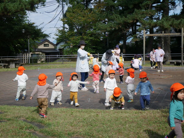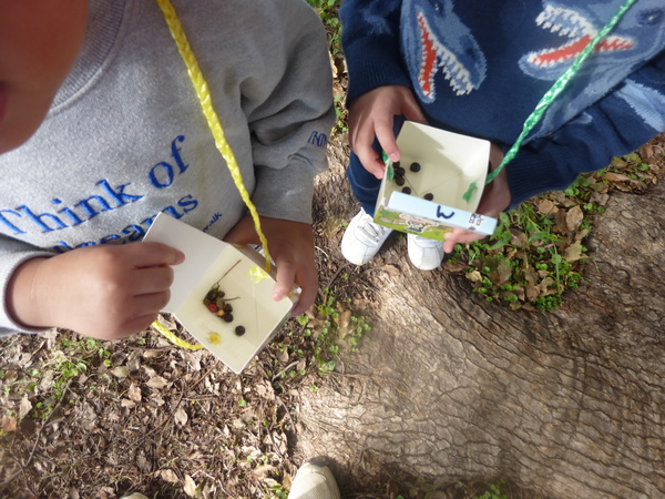 まつ組は旭小学校へ行き、校庭の芝生部分で木の実や落ち葉を拾ったりして遊びました🍁