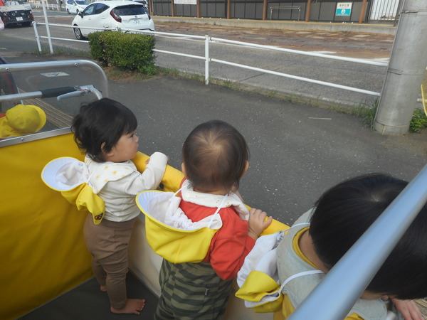 ゆり組・すみれ組は市電に乗って岩田運動公園へ行きました。