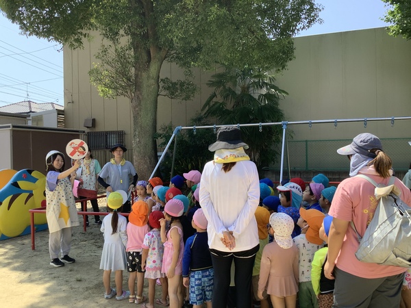 防災訓練では、地震後の火災想定で訓練をしました。みんな静かに外に避難できました。煙が出ることを予想して口を手で押さえる姿も見られました👏