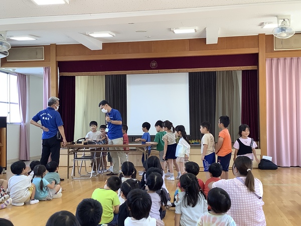 環境教育訪問がありました。ごみの分別について教えてもらいました。分別のクイズにもみごと正解✨ゴミゴミお化けをやっつけたぞ!