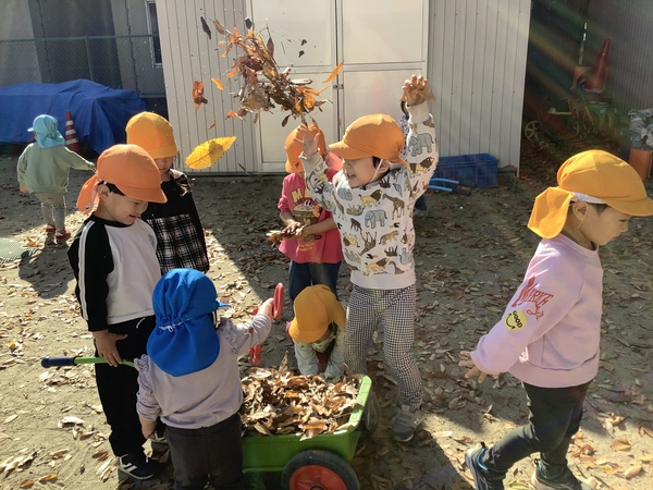園庭には色とりどりの落ち葉がたくさん🍂友だちと色や形を比べたり、落ち葉を踏んで感触や聞こえる音を楽しんだりしています😊また、幼児クラスの子どもたちは、鬼ごっこやドッジボールを思いきり楽しむ姿も見られます。秋から冬に代わっていく時期です。寒さに負けず戸外で元気いっぱい楽しんでいきたいと思います⭐