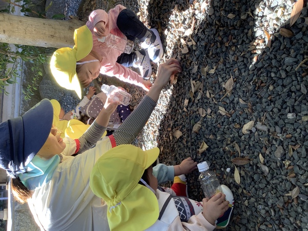 園庭ではボールや砂場で誘い合って遊んだり、ミミズ🐛やダンゴムシ・てんとう虫🐞などを探しては、友だちと歓声を上げて喜んでいます。