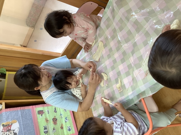 小麦粉粘土を楽しみ中🎵色々な自然物や素材に触れ、感触を楽しんでいます(*^-^*)