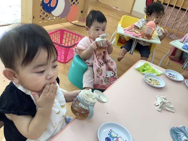 日によっては暑さを感じるようになりました。子どもたちの健康状態に注意しながら、水分補給をしたり休息時間を設けたりして、ゆったりとした雰囲気の中で心地良く過ごしていきたいと思います。