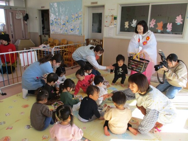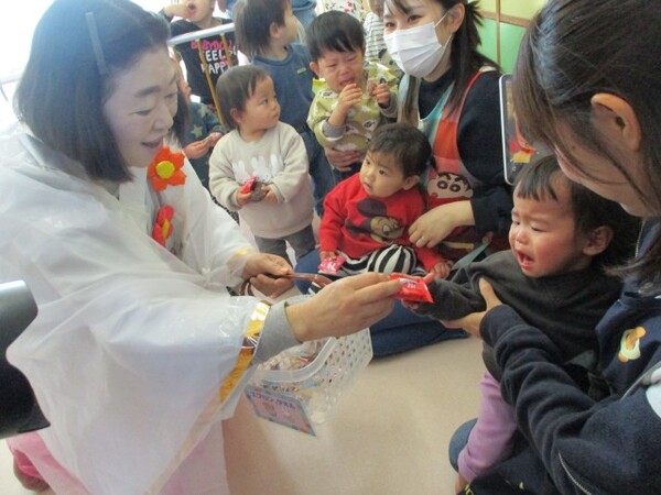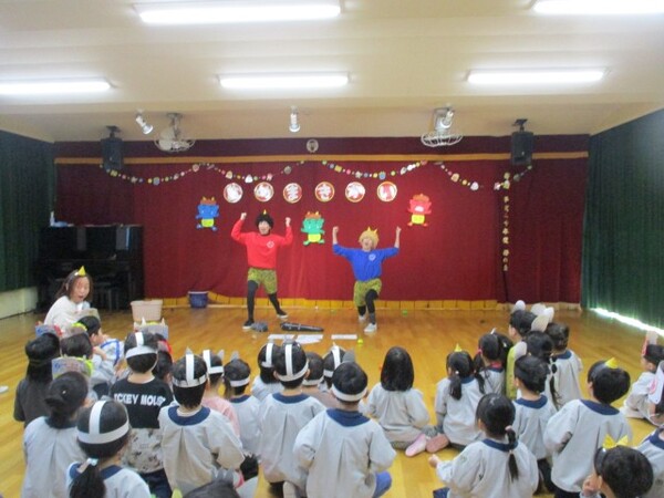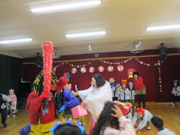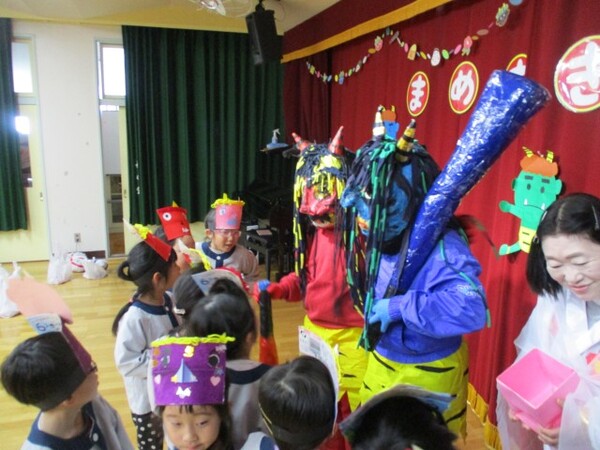 当日は鬼の登場に泣けてしまう子もいましたが、頑張って豆ボールをぶつけて見事鬼を退治することができました👏