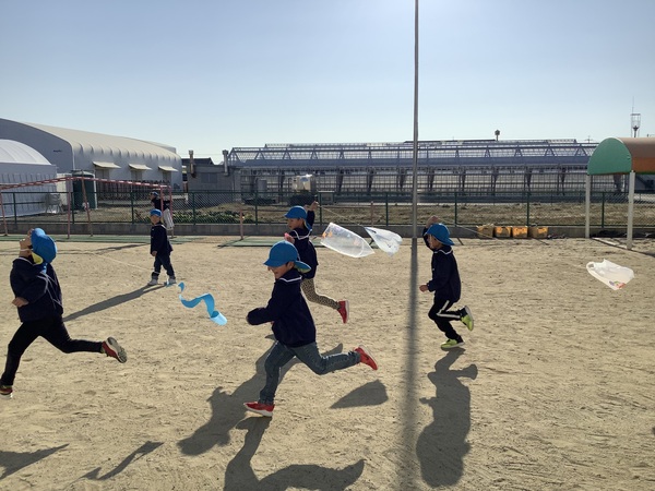 • 「高く上がれ〜!!」風に向かって全力疾走!!