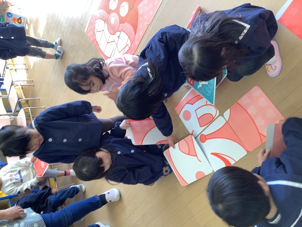 • 絵合わせカルタ♪友だちと一緒に絵を完成させるよ。